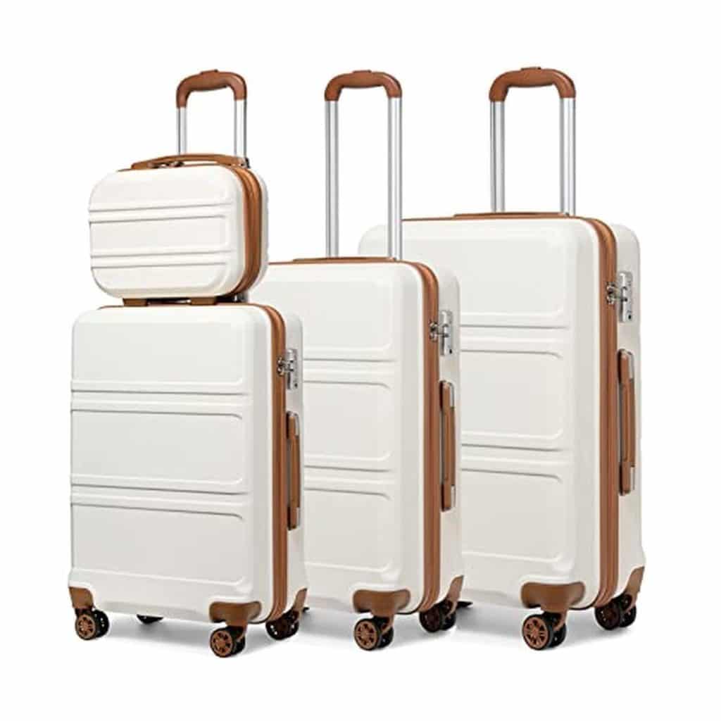 • Kono Set de 4 Valises Rigide Bagage Cabine 55cm + Valise Moyenne 65cm + Valise Grande 74cm avec 4 roulettes et Serrure TSA + Vanity Case, Blanc Crème